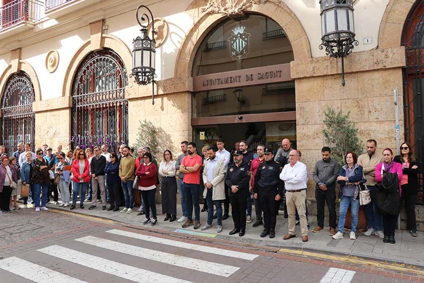 Sagunto ha atendido así la convocatoria de la Federación Valenciana de Municipios y Provincias (FVMP) en solidaridad con los cientos de familias que han perdido a seres queridos o que siguen buscándolos, así como las numerosas personas afectadas.