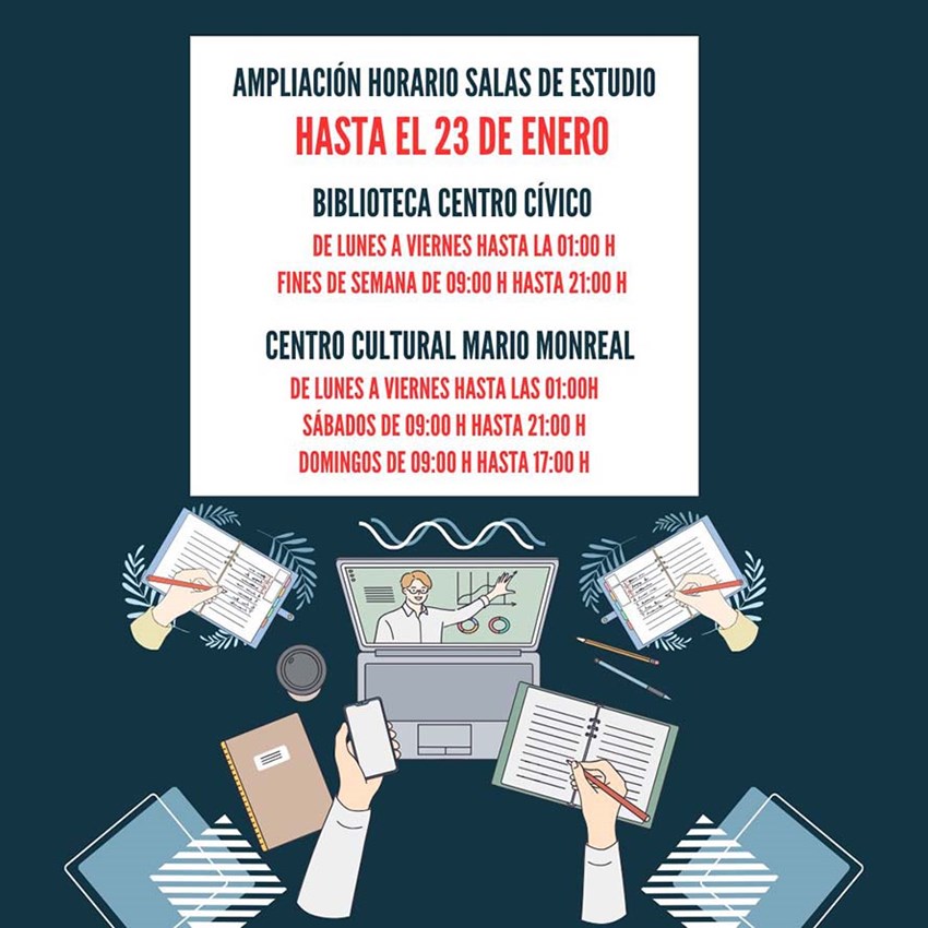 Con motivo de la época de exámenes, y con el objetivo de facilitar a los y las estudiantes su acceso a espacios de estudio habilitados en el municipio, permanecerán abiertas más tiempo