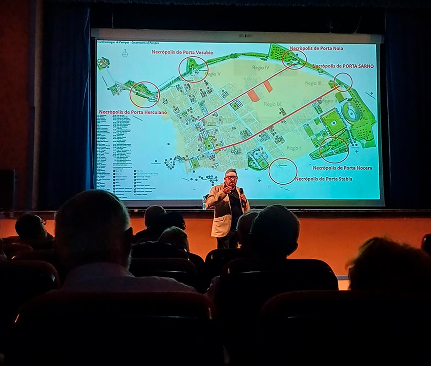 La conferencia ‘Hasta que la muerte nos reúna. Nuevos descubrimientos en Pompeya’ despertó el interés de la ciudadanía que se acercó a la Casa Municipal de Cultura para conocer los últimos hallazgos del arqueólogo y antropólogo Llorenç Martín. La ponencia del director de la investigación arqueológica de Pompeya para la Universidad de Valencia se enmarca dentro de la programación de la II Muestra Sagvntvm in Mare Nostrvm y ha contado con la colaboración de la asociación Nautilus.