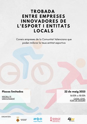 El Casal Jove de Puerto de Sagunto acoge un encuentro entre empresas innovadoras del deporte y entidades deportivas locales que se llevará a cabo mañana, jueves 22 de mayo, entre las 16 y las 18 horas. Para participar en este evento, organizado por la plataforma Hub Sport Valencia 4iCV con la colaboración del Ayuntamiento de Sagunto, es necesario inscribirse con antelación, ya que las plazas son limitadas y se asignarán por orden de inscripción.