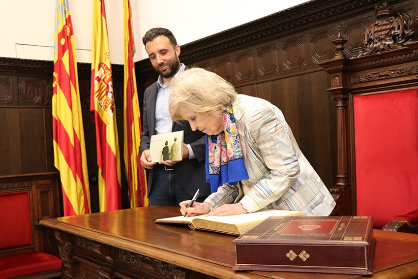 Cecilia Rodrigo ha firmado en el libro de honor de la ciudad con motivo de la visita agradeciendo al Ayuntamiento su recepción. En el acto han estado presentes también otros familiares, representantes de las sociedades musicales de la ciudad y miembros de la Corporación Municipal.