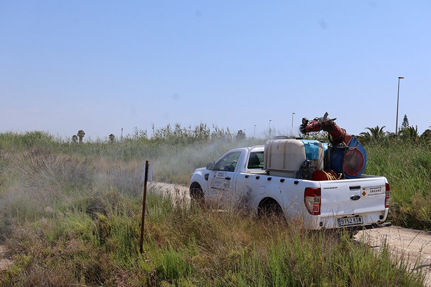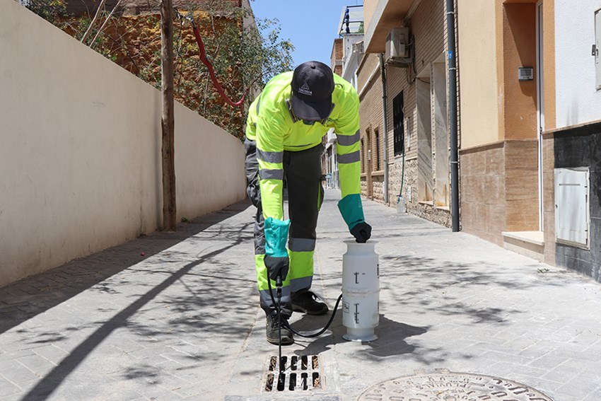 La empresa encargada de los trabajos está aplicando biocidas en la red de alcantarillado, larvicidas en la desembocadura del Palancia e insecticidas en los parques y jardines urbanos