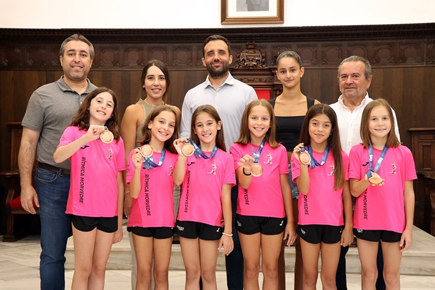 El Ayuntamiento de Sagunto ha recibido a seis deportistas del Club Gimnasia Rítmica Morvedre por obtener la medalla de bronce en el Programa Largo en categoría Infantil 8-10 años del Campeonato de España de Gimnasia Estética de Grupo.