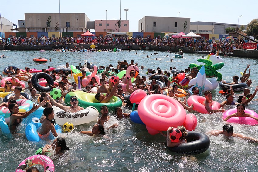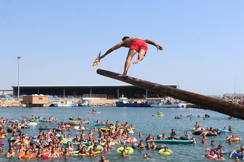 La jornada festiva, que ha reunido a miles de vecinos y vecinas, ha empezado con la Travesía a Nado y también se han celebrado la prueba del palo engrasado y el lanzamiento de pelotas