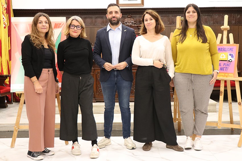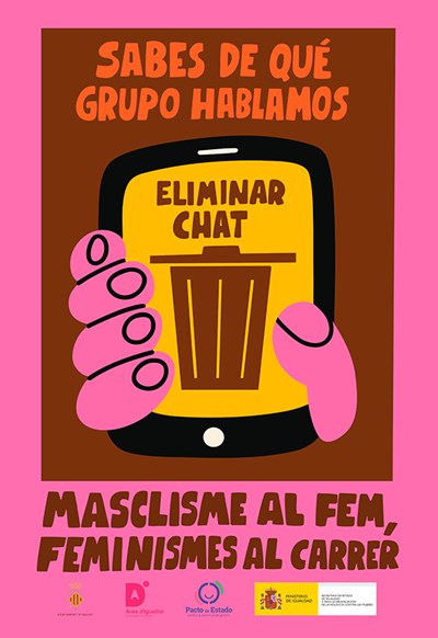 Masclisme al fem, feminisme al carrer consiste en la instalación en vallas publicitarias repartidas por toda la ciudad de cinco ilustraciones que suscitan a la reflexión social. También se pegarán carteles con estas imágenes y se repartirán pegatinas entre los comercios adheridos al Pacto Ciudadano Contra la Violencia de Género de Sagunto.