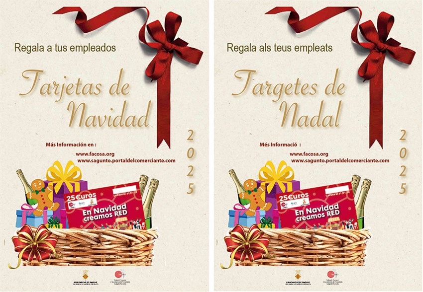 El Ayuntamiento de Sagunto, a través de la Concejalía de Comercio y Mercados, promueve la campaña En Navidad creamos Red. Esta iniciativa se hace de forma conjunta con la Federación Comarcal de Asociaciones de Comerciantes (FACOSA) del Camp de Morvedre y tiene como objetivo fomentar el comercio local desde las empresas de la ciudad, que podrán regalar a sus trabajadores y trabajadoras una tarjeta por valor de 25 € para gastar en el comercio de proximidad.