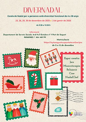 Se acerca la Navidad, y con ella llegan también las numerosas actividades que desde el Ayuntamiento de Sagunto se organizan para el público más pequeño de la casa. Entre ellas destacan el Campus Nadal, l'Escola de Nadal y el DiverNadal, que un año más han preparado respectivamente las concejalías de Actividad Física, Salud y Deportes; de Juventud e Infancia; y de Servicios Sociales.
