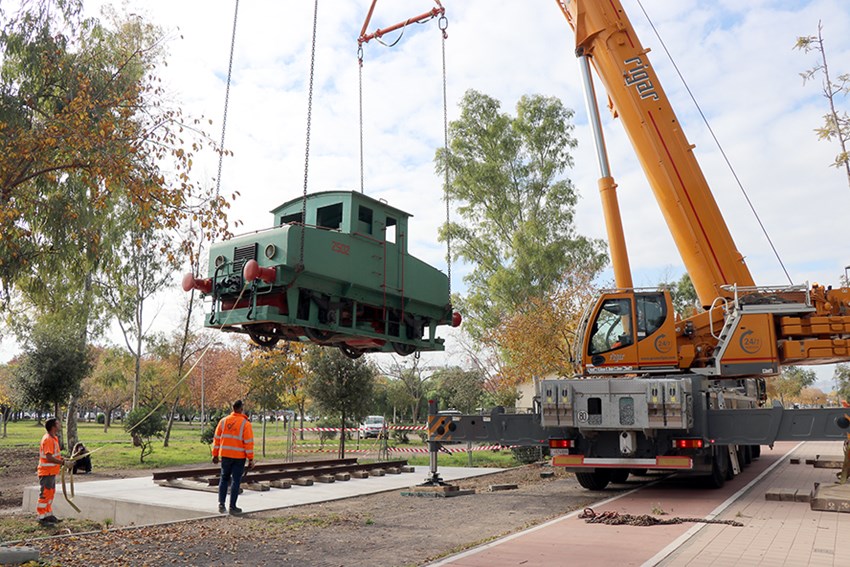 El Ayuntamiento de Sagunto ha llevado a cabo el traslado de la locomotora nº 2502 del conocido popularmente como ‘el trenillo’ a la avenida Adolfo Suárez de Puerto de Sagunto para su exposición permanente al aire libre como elemento representativo del patrimonio industrial local.