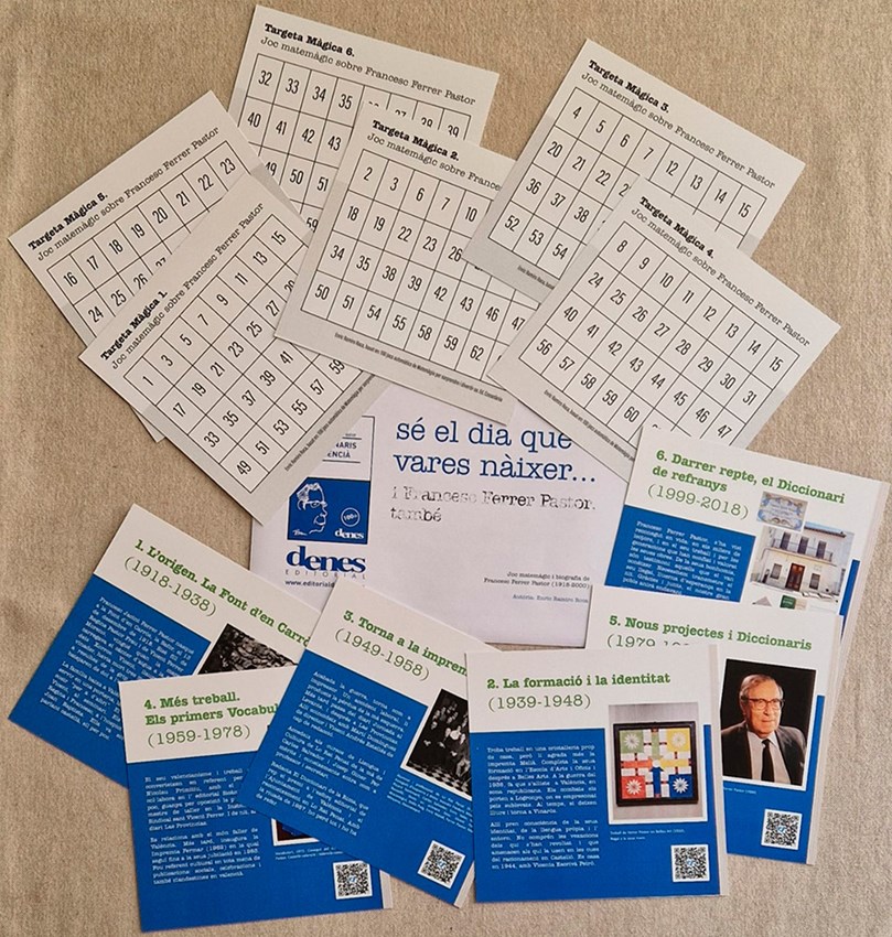 Los materiales han sido editados por Denes Editorial y también se pueden solicitar por escrito los ejemplares que se necesiten a denes@editorialdenes.com hasta agotar existencias, y se enviarán de forma gratuita. El material está dirigido a escuelas, institutos, universidades, entidades sociales y culturales y particulares. Estos recursos pretenden dar a conocer la vida y la obra de Francesc Ferrer Pastor y, a su vez, ofrecer un instrumento donde se encuentran las letras y la ciencia a través de la originalidad de la “matemagia”.