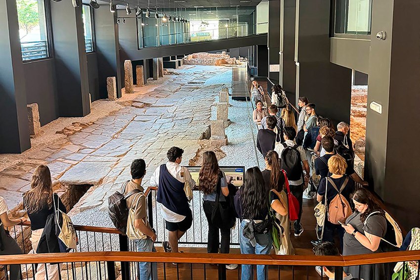 La concejala de Patrimonio Cultural e Industrial, Natalia Antonino, y personal técnico del departamento han acompañado al alumnado en esta visita técnica que ha pasado por sitios arqueológicos como el Teatro Romano y su entorno, la plaza del Fòrum Municipal o la Via del Pòrtic, entre otros espacios.