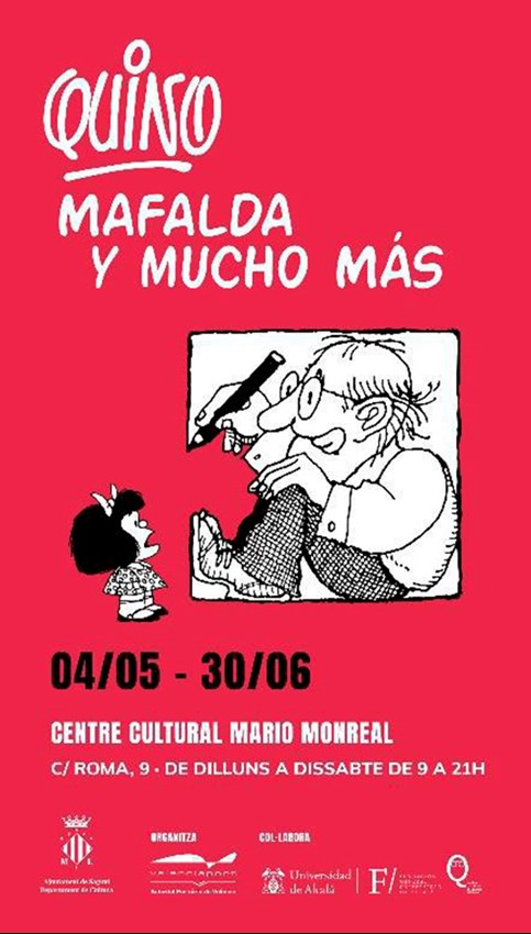 La exposición Quino, Mafalda y mucho más permanecerá en el Centro Cultural Mario Monreal de Sagunto desde hoy hasta el viernes 30 de junio. Se podrá visitar de lunes a sábado y de 9 a 21 horas, y la entrada es gratuita. Es una exposición organizada por la Autoridad Portuaria de Valencia en colaboración con el Instituto Quevedo del Humor de la Universidad Alcalá de Henares y, en esta ocasión, el Ayuntamiento de Sagunto. Forma parte de la programación de primavera de la delegación de Cultura del Ayuntamiento de Sagunto y se trata de una exposición itinerante que ahora hace parada en Sagunto.