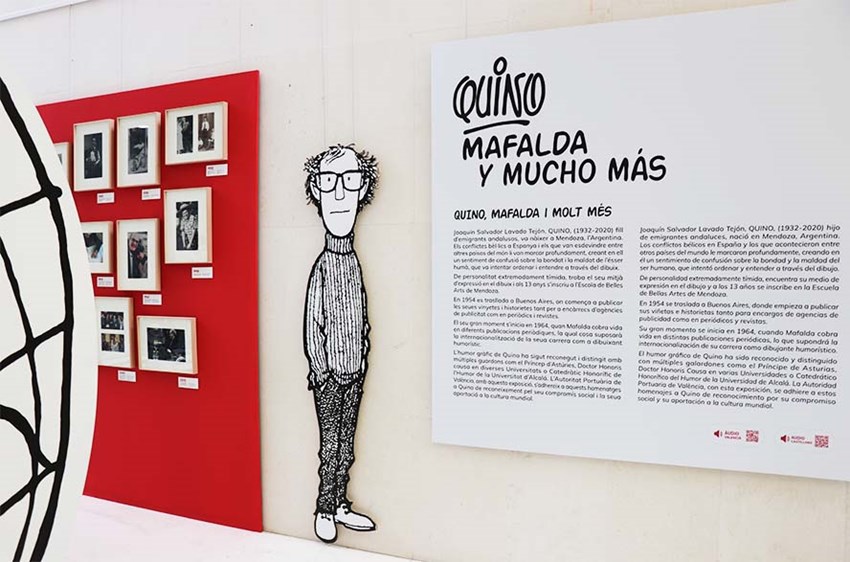 Se trata de una breve muestra del gran humorista Joaquín Salvador Lavado Tejón, más conocido por el pseudónimo de Quino. Se exponen más de 200 viñetas, carteles publicitarios o audiovisuales del autor. La muestra cuenta con códigos QR para descargar audios en los móviles, un apartado con braille y una sección activa para los más pequeños. Además, «es una expresión cultural que es muy apreciada por muchas generaciones y, por lo tanto, muy valiosa», tal y como ha expresado el presidente de la Autoridad Portuaria de Valencia, Joan Calabuig.