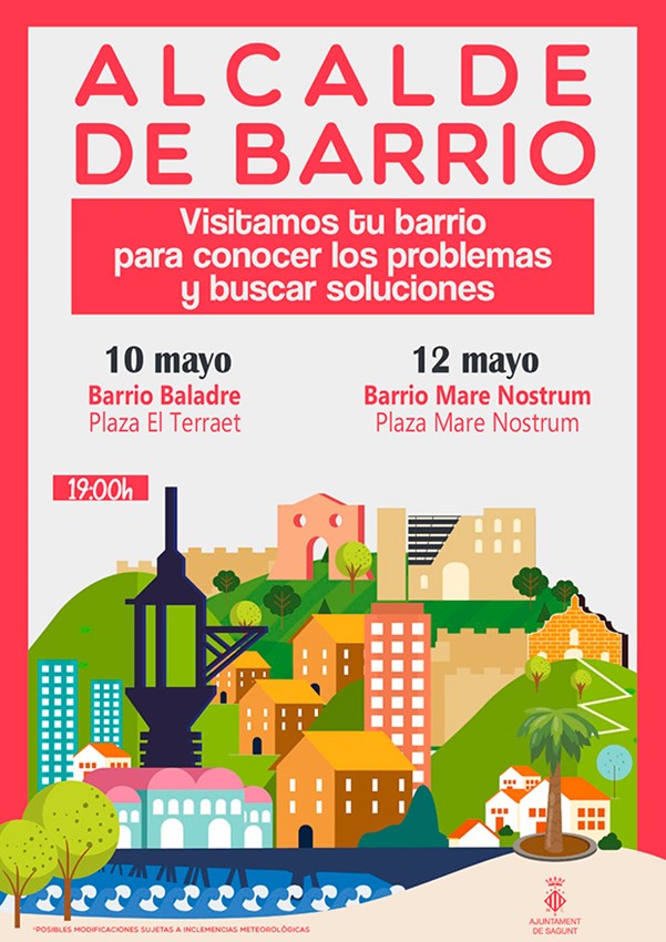 Alcalde de Barrio es una idea impulsada por el departamento de Participación Ciudadana y la Alcaldía del Ayuntamiento de Sagunto. La iniciativa consiste en encuentros públicos por parte del alcalde con asociaciones ciudadanas, entidades y ciudadanía en general, así como con toda aquella persona que tenga interés en hablar sobre asuntos concretos del barrio que se visita en cada ocasión.