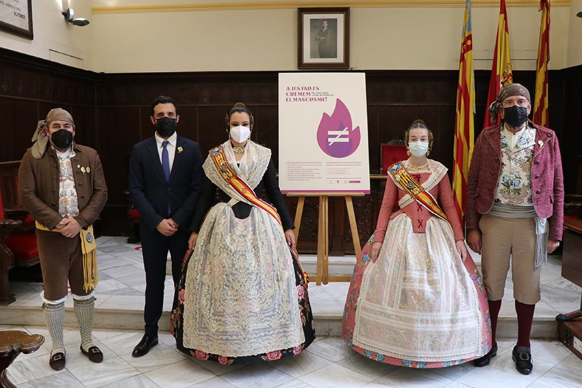 La Concejalía de Igualdad del Ayuntamiento de Sagunto ha presentado esta mañana la campaña A les Falles cremem el masclisme! (¡En Fallas quememos el machismo!), con el objetivo de sensibilizar a la ciudadanía de Sagunto y a las personas que se acerquen a conocer la fiesta para vivir y disfrutar de unas fallas libres de cualquier tipo de violencia.