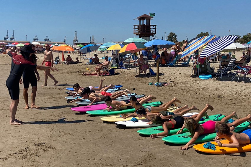 Además de ello, cada semana se organizan en la playa acciones de iniciación en prácticas náuticas y en deportes como el surf. Este martes fue la fiesta del agua, un evento que une música, espectáculo y diversión para los más pequeños de la casa. Asimismo, los y las menores participantes han visitado recientemente el parque acuático Monmar, en la playa de Moncófar (Castellón).