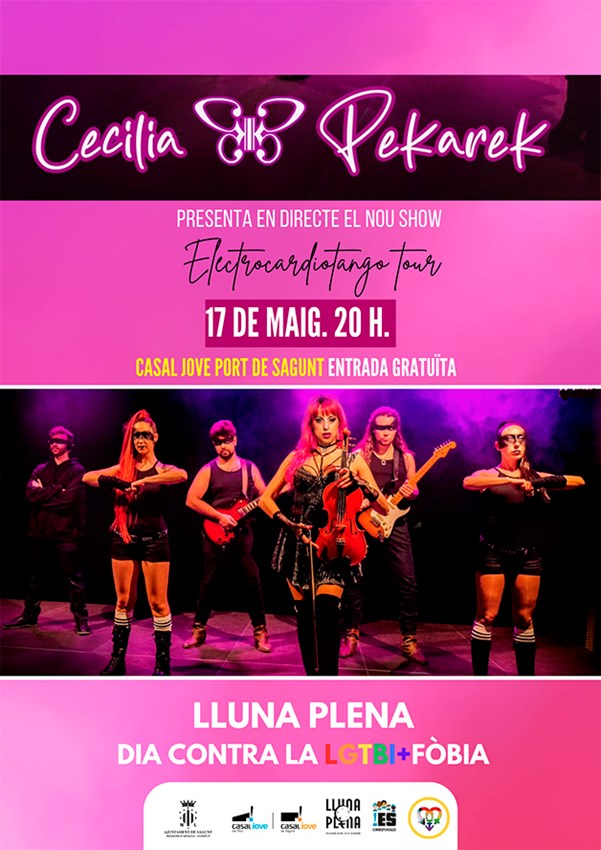 Hoy, a las 20 horas, la violista argentina residente en nuestra ciudad Cecilia Pekarek presenta su nuevo espectáculo y disco Electrocardiotango en el Casal Jove de Puerto de Sagunto. En el espectáculo, que se podrá presenciar gratuitamente, se combina música con danza y cuenta, entre otros, con colaboraciones de componentes del joven grupo local Bendita Locura y bailarinas de nuestra ciudad. La actuación se enmarca en las actividades de Ocio Alternativo Lluna Plena, que en esta ocasión tiene como temática central el día contra la LGTBI+fobia.