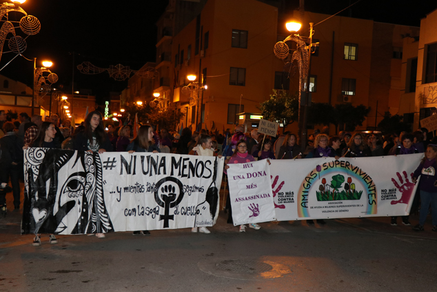 La marcha se inició a las 18.30 horas en la Tenencia de Alcaldía de Puerto de Sagunto y recorrió la avenida Camp de Morvedre de Puerto de Sagunto. Concluyó en la rotonda donde se cruzan las calles Periodista Azzati y Alcalá Galiano. Ahí, frente a la escultura de la Tolerancia, se depositaron las pancartas utilizadas en la manifestación y lazos de color morado en recuerdo a las mujeres asesinadas este año. En este punto se hizo lectura de un manifiesto y de los nombres de todas las mujeres que han sido asesinadas por violencia de género en el último año, además de rendir homenaje a los huérfanos que éstas han dejado cuyos nombres fueron leídos a modo de denuncia y recuerdo. Cabe recordar que en este año el total de mujeres víctimas que han fallecido por esta causa es de 52, y que desde 2003 la cifra de mujeres asesinadas asciende a las 1.028. Además, la violencia de género ha dejado 37 menores huérfanos desde el año 2013 y seis niños fallecidos por esta misma causa.