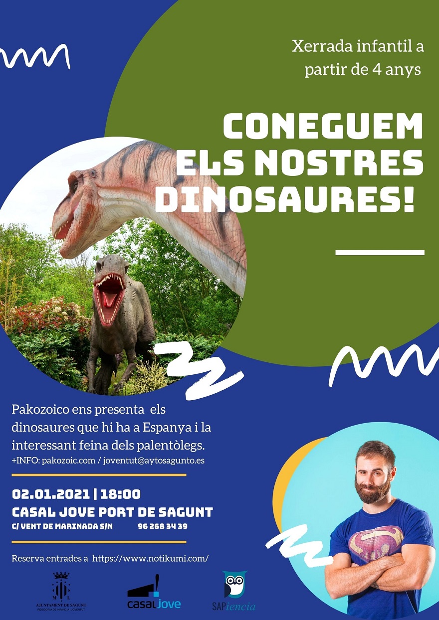 El paleontólogo y youtuber Pakozoico dará una charla en el Casal Jove sobre los dinosaurios y el trabajo que hacen los paleontólogos. Esta actividad de ciencia bajo el nombre de ‘Coneguem els nostres dinosaures!’, está organizada por la delegación de Juventud e Infancia, forma parte de la programación de Navidad y tendrá lugar el 2 de enero,  las 18 horas. Será una charla divertida e interactiva, dirigida a menores a partir de 4 años, que hará especial hincapié en los dinosaurios que se han encontrado en España.
