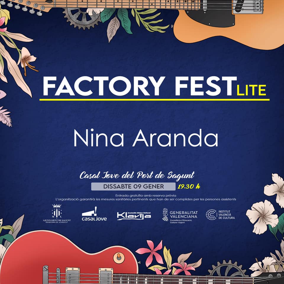 El próximo sábado, 9 de enero, el Casal Jove de Puerto de Sagunto acogerá el siguiente concierto de la segunda edición del festival Factory Fest el cual llevará a cabo la cantautora local Nina Aranda a las 19.30 horas.