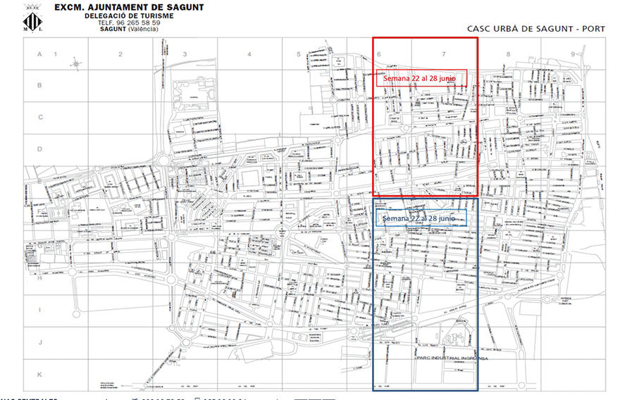 La delegación de Sanidad del Ayuntamiento de Sagunto continúa con los tratamientos del alcantarillado de la ciudad contra plagas de cucarachas y ratas. Después de que la semana pasada los trabajos se centraran en los barrios más próximos al mar en el núcleo de Puerto de Sagunto, durante la semana del 22 al 28 de junio, serán las siguientes zonas en dirección oeste las que serán tratadas. Concretamente, los trabajos de esta semana se centrarán en las zonas próximas al Casal Jove, al CEIP María Yocasta, al IES Maria Moliner, al CEIP Mediterráneo, al Barrio Obrero o a la Gerencia, entre otras.