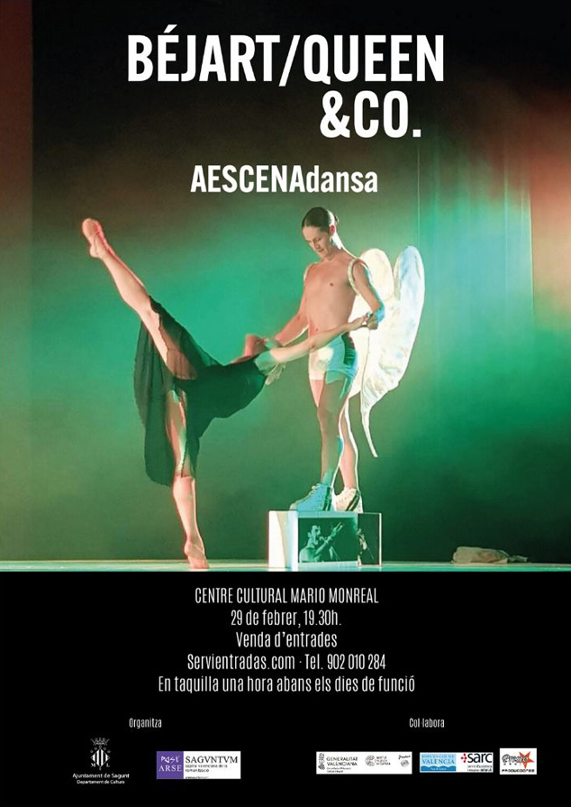 La delegación de Cultura ha programado para este sábado 29 de febrero, el espectáculo Béjart/Queen & Co., de la compañía de Puerto de Sagunto Aescenadansa. Esta representación se plantea como una revisión de la obra de reconocidos coreógrafos como Ohad Naharin, Maurice Béjart, Thierry Malandain, Adam Hougland y Mircea Ghinea. Comenzará a las 19.30 horas, en el Centro Cultural Mario Monreal.
