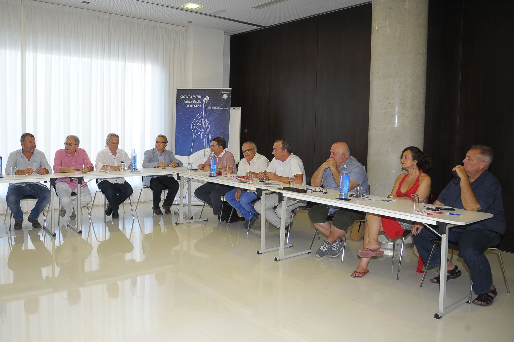 Nueve directores de festivales escénicos y personalidades del ámbito de la cultura valenciana se han reunido este fin de semana en Puerto de Sagunto con el objetivo de debatir y promover la colaboración entre los diferentes eventos culturales y teatrales que se desarrollan durante el verano. Al acto asistieron el alcalde de Sagunto, Quico Fernández, y el delegado de Cultura, José Manuel Tarazona.