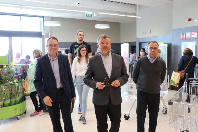 El alcalde de Sagunto, Quico Fernández, y el concejal de Actividades, Guillermo Sampedro han asistido esta mañana la inauguración del nuevo Lidl. Acompañados por la dirección de la nueva tienda, han visitado las instalaciones en su día de apertura.