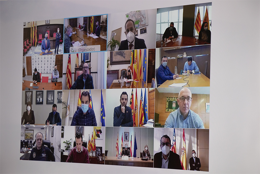 Esta mañana el presidente de la Generalitat Valenciana, Ximo Puig, se ha reunido de manera telemática con los alcaldes y representantes de los términos municipales con población superior a 50.000 habitantes. A esta reunión sobre coordinación de los municipios con reducción de movilidad social han asistido el alcalde de Sagunto, Darío Moreno, y el comisario principal jefe de la Policía Local de Sagunto, Rafael de Manuel.