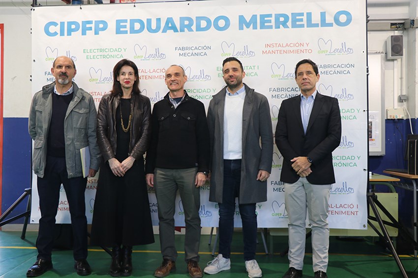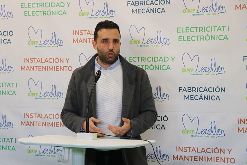 El alcalde también ha hecho referencia a la valoración que hacen las empresas del municipio sobre la formación profesional que se imparte en él, e indica que es «altísima» y ha argumentado: «De hecho cuando miramos las ratios de desempleo correspondientes, nuestros ciclos de FP, y particularmente los que se imparten aquí, en Merello, tienen unos índices más bajos».