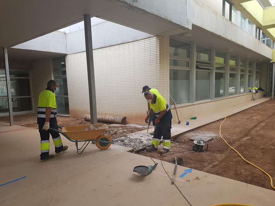 Los trabajos que se han llevado a cabo han sido en el CEIP Ausias March (pintura interior edificio, reparación muro patio Primaria e instalación de lavabos en Aulario), en el CEIP Baladre (acondicionamiento pasillo exterior, trabajos de pintura y reparación y adecuación de accesibilidad al patio), en el CEIP Begoña (pintura interior edificio), en el CEIP Cervantes (pintura interior edificio), en el CEIP Cronista Chabret (pintura interior y exterior edificio y reparación baño Salón de actos), en la EPA Miguel Hernández (reparación y pintura interior, reparación azulejos zócalo bajo ventanas y bancada entrada al centro), en el CEIP Joaquín Rodrigo (reparación y pintura), en el CEIP Jose Romeu (pintura interior edificio), en el CEIP María Yocasta (reparación suelo pasillo entre Infantil-Primaria), en el CEIP Pinaeta (reparación humedades y pintura paredes cuarto caldera), en el CEIP Maestro Tarrazona (reforma zona duchas gimnasio, trabajos de pintura y reparación y pintura valla contenedores) y en el CEIP Vilamar (repasar y pintar valla exterior Primaria e instalación fuente patio Primaria).