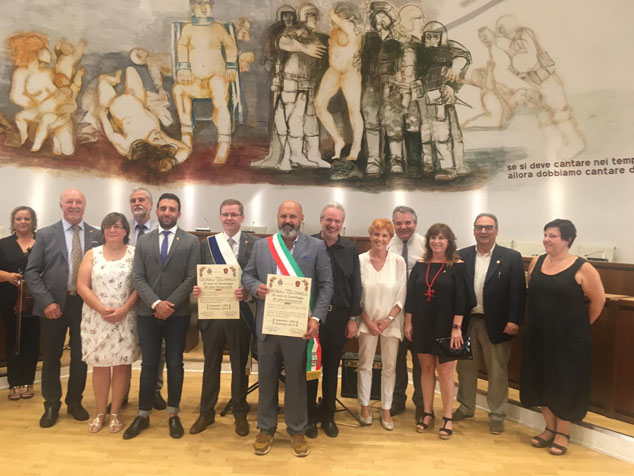 El alcalde de Sagunto, Darío Moreno, y la concejala de Hermanamiento, María José Carrera han asistido este fin de semana a La Targa, fiesta de Cecina, ciudad italiana hermanada con Sagunto. Junto a ellos, también ha estado una representación de la Federación Junta Fallera de Sagunto, con sus Falleras Mayores de 2018-2019 Paula Marrón e Inés Miret.