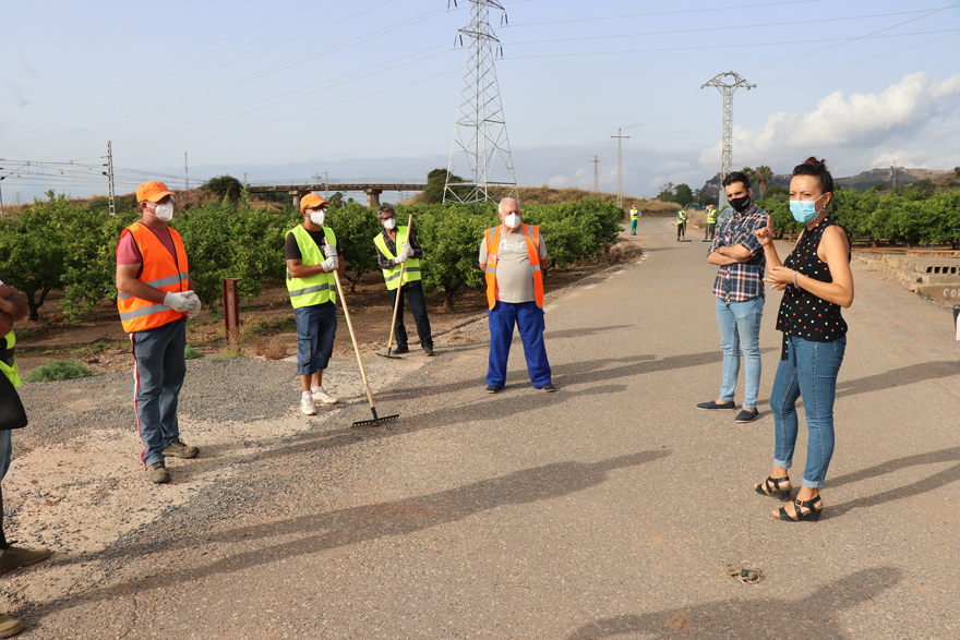 Según la concejala «este tipo de campañas son muy completas porque a través de esta subvención no solamente estamos dando trabajo a personas paradas de larga duración sino que además podemos hacer actuaciones en nuestro término municipal que son muy necesarias y que tanto vecinos y vecinas como agricultores y agricultoras nos vienen reivindicando». Además durante la visita, «hemos hecho hincapié en que este año deben tener especial cuidado con las medidas de seguridad, ya que no solo están trabajando bajo inclemencias climatológicas duras, sino que además por las amenazas de la COVID-19, hay que extremar las medidas de seguridad, por lo que están trabajando con mascarilla y guardando las distancias de seguridad necesarias».