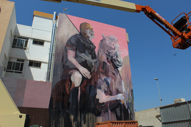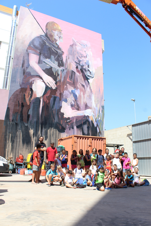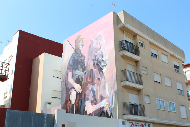 Este proyecto está situado en la avenida Sants de la Pedra (a la altura del número 101), en Sagunto. Se trata del quinto mural de esta edición que, por motivos de agenda del artista, lo está realizando en estos momentos y tiene previsto acabar mañana.