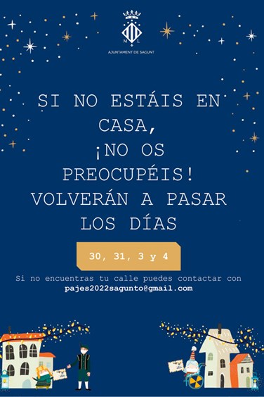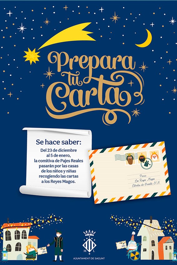 En concejal de Juventud e Infancia, Guillermo Sampedro, ha comentado que este año han vuelto a hablar con sus majestades los Reyes Magos: « Nos han pedido que garanticemos que todos los niños y niñas de Sagunto envíen sus cartas. Por esa situación razón y teniendo en cuenta la pandemia en la que nos encontramos, ponemos a disposición de todos los pequeños un ejército de pajes reales que irán casa por casa recogiendo todas y cada una de las cartas ».