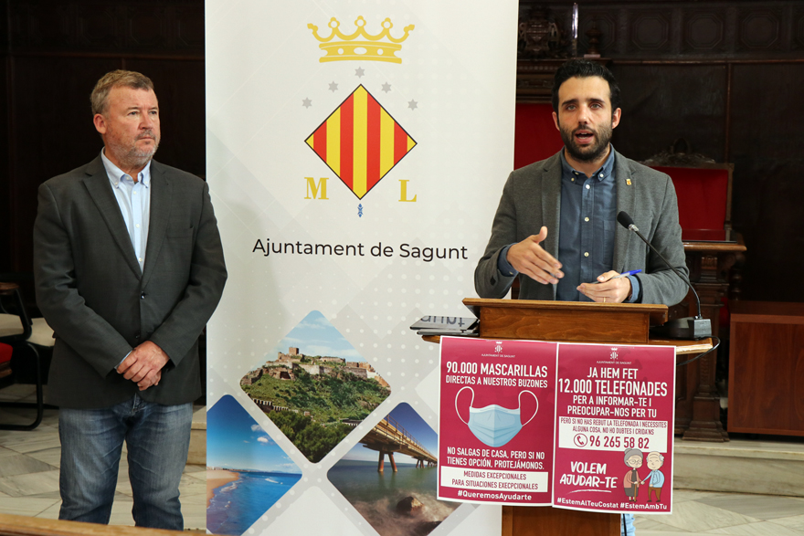 Esta medida se suma a otras ya tomadas por diferentes administraciones, como por ejemplo la cesión de 16 000 mascarillas por parte del Gobierno Central al Ayuntamiento de Sagunto para repartir entre la población que utiliza el transporte público para acudir a sus puestos de trabajo debido a la reincorporación progresiva de determinadas personas esta semana. Por otro lado, y atendiendo a la población de riesgo y más vulnerable en términos sanitarios, el primer edil ha anunciado que la Generalitat Valenciana proveerá a las farmacias de mascarillas para repartir de manera gratuita a esas personas y que se hará a través de la tarjeta SIP.
