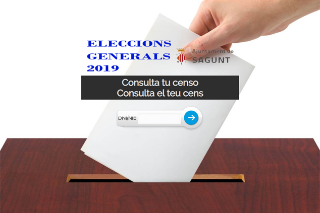 De cara a los próximos comicios electorales que se celebrarán en toda España el 10 de noviembre, el Ayuntamiento de Sagunto pone a disposición de la ciudadanía el censo electoral que podrá consultar a través de diferentes vías para comprobar que no hay ningún fallo y que se está censado para poder ejercer su derecho al voto.