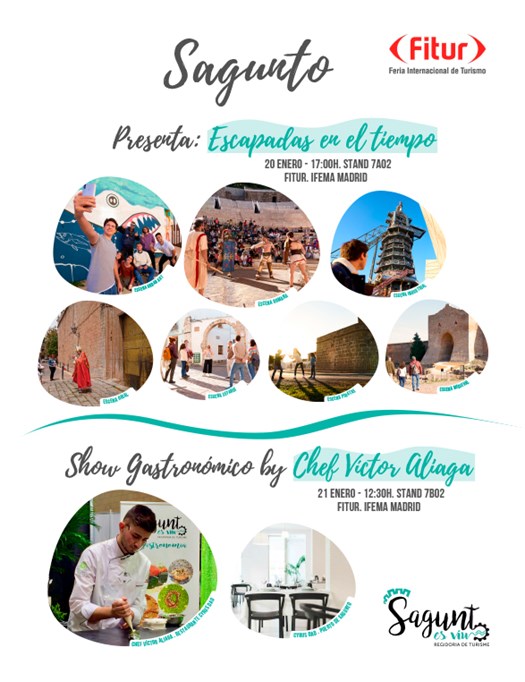 Un año más, Sagunto vuelve a estar presente en la Feria Internacional de Turismo (FITUR) con una agenda cargada de reuniones para promocionar lo mejor de la ciudad y consensuar nuevos proyectos. Asimismo, siguiendo una importante agenda institucional, permitirá desgranar las previsiones turísticas y las líneas estratégicas y de trabajo conjunto para un correcto desarrollo y planificación de la actividad turística. Esta edición también se caracterizará por ser un Fitur Digital, donde grandes pantallas proporcionarán la información, si bien asesorados por personal especializado.