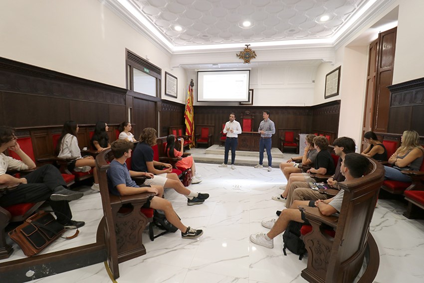 Hoy el Ayuntamiento de Sagunto ha recibido en el salón de plenos a una docena de alumnos y alumnas de Estados Unidos que están estudiando en la Florida State University (FSU) en Valencia. El alcalde de Sagunto, Darío Moreno, y el concejal de Universidad, Ciencia e Innovación, Toni Iborra, les han explicado cómo está trabajando el Ayuntamiento para transformar la ciudad en una Smart City.