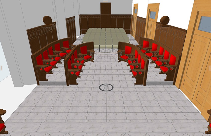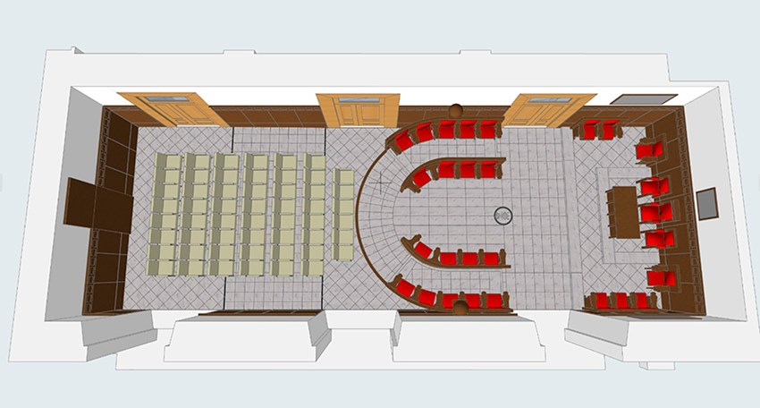 Las acciones clave de esta operación incluyen la eliminación de barreras arquitectónicas, instalando un punto de acceso adaptado para garantizar la accesibilidad de la ciudadanía; la supresión de las barreras visuales existentes mediante la redistribución de las butacas de los concejales y concejalas, creando así un espacio abierto al público, permitiendo una disposición radial de asientos que facilitará la interacción entre la zona de autoridades y la del público.