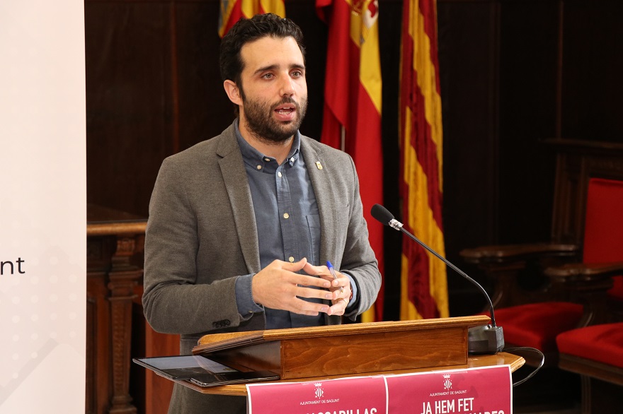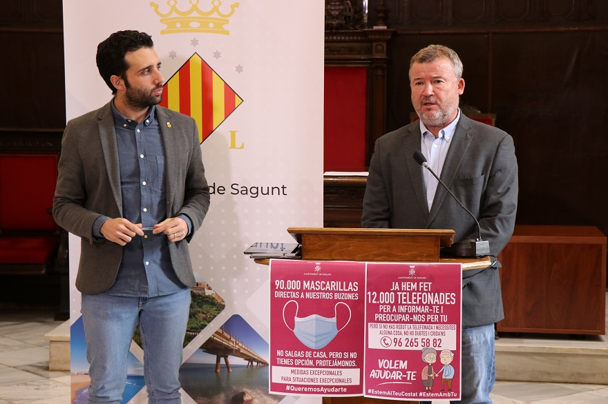 El Ayuntamiento de Sagunto repartirá 90.000 mascarillas a domicilio por correo y aplaza el pago en periodo voluntario de la tasa de vados al 3 de junio. Así lo ha informado esta mañana en rueda de prensa el alcalde de Sagunto, Darío Moreno, además de la evolución de medidas extraordinarias como el servicio de atención a personas mayores.