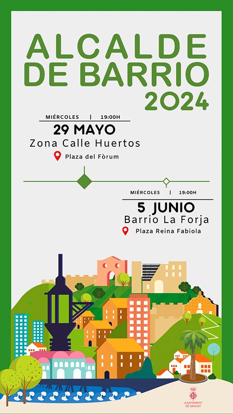El Ayuntamiento de Sagunto retoma la iniciativa de participación ciudadana Alcalde de Barrio para continuar conociendo de primera mano las necesidades y las inquietudes de la ciudadanía, así como las problemáticas específicas de cada zona del municipio. La segunda edición de esta iniciativa, impulsada por el departamento de Alcaldía y la concejalía de Participación Ciudadana, continúa el próximo 29 de mayo a las 19 horas en la plaza del Fòrum (zona calle de los Huertos) y el 5 de junio en la plaza Reina Fabiola (barrio La Forja).