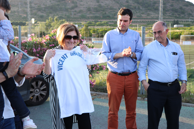 Irene Fita, viuda de Vicent Graullera, recordó la dedicación de su marido al fútbol base: “Vicent era especial, una buena persona, que se implicaba al máximo por los demás y estaba orgulloso de su club, Fútbol Base Sagunto. Siempre decía que era su segunda familia, llena de personas de aquí, de allá, que a través de su esfuerzo y trabajo, constanza y amistad dieron vida a este gran proyecto”. Terminó dando las gracias a todo el mundo y a “Vicent por ser y darnos tanto y gracias por ganar el último partido de tu vida.”