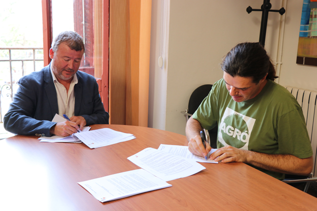 El convenio lo han firmado el alcalde de Sagunto, Quico Fernández, y el presidente de la asociación Acció Ecologista Agró, Jorge Mateos. En el acto también han estado presentes otros componentes de la asociación ecologista, como Sara Aunés.