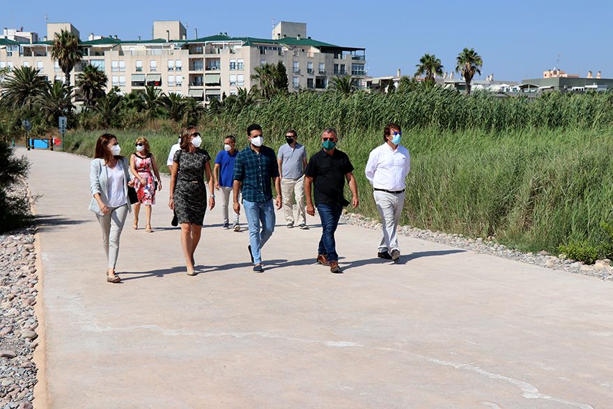 Por otro lado, el alcalde ha destacado algunas particularidades de la obra, debido a las limitaciones establecidas por la Confederación Hidrográfica del Júcar, ya que para poder actuar en esta zona «no podíamos poner mobiliario en la zona de la desembocadura. El proyecto inicial contaba con bancos o papeleras, pero las normas están muy establecidas en este entorno natural protegido y tiene unos condicionantes muy severos», ya que los proyectos tienen que contar con el visto bueno de Costas y de la Confederación.