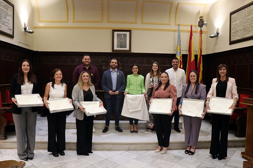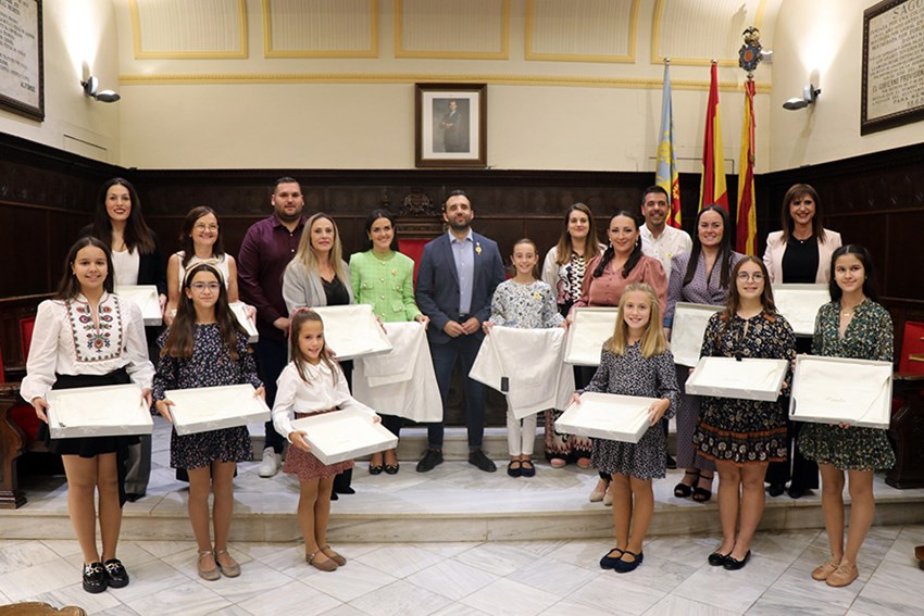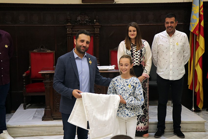 El Consistorio ha obsequiado también con el tradicional mantón, como viene ocurriendo año tras año, a la Corte de Honor formada por Beatriz Gómez Méndez y Jessica Rodríguez Guillén, de la Falla El Mercat; Emelina García Peñaranda, de la Falla La Victoria; Rocío Noverques Gómez y Rut María García Hiraldo, de la Falla Teodoro Llorente; Begoña Expósito Martínez, de la Falla Eduardo Merello; Sara Pérez Martínez, de la Falla Doctor Palos; Mireia Graullera Galarza, de la Falla La Vila; Pilar Mena Manchón, de la Falla El Tronaor; Marta Morán Carrillo; de la Falla Vila de Faura; Laura Alcantud García, de la Falla Xurruca-Hispanitat; y Paula Acosta González, de la Falla Plaza Ibérica.