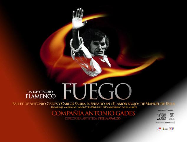 Coincidiendo con el décimo aniversario del fallecimiento de Antonio Gades, la Fundación, que lleva su nombre, se dispuso a acometer un reto de especial trascendencia: poner en pie la versión de “El Amor Brujo” que con el título de “Fuego” supuso el segundo acercamiento escénico del coreógrafo alicantino al ballet de Manuel de Falla.