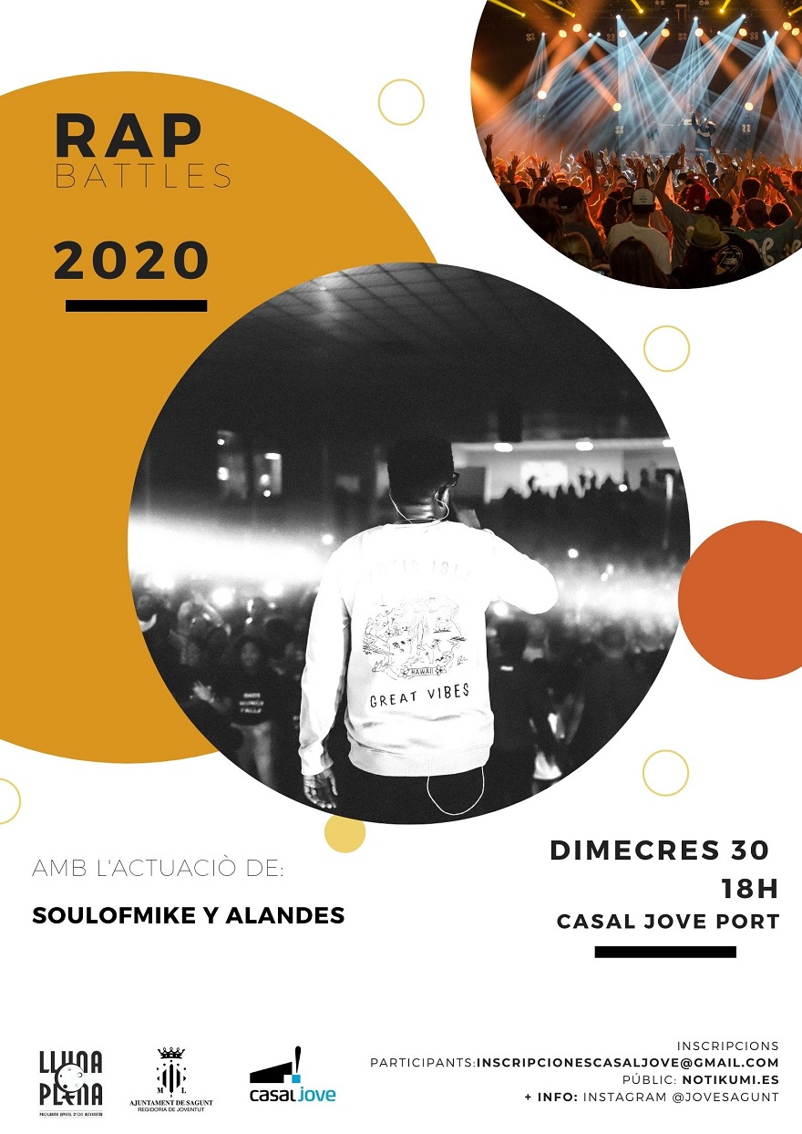 Además de las batallas, el acto contará con la actuación de Javier Alandés y Miguel Vilatela, más conocidos como Alandes y Soulofmike, muy conocidos en el mundo del rap y las batallas.