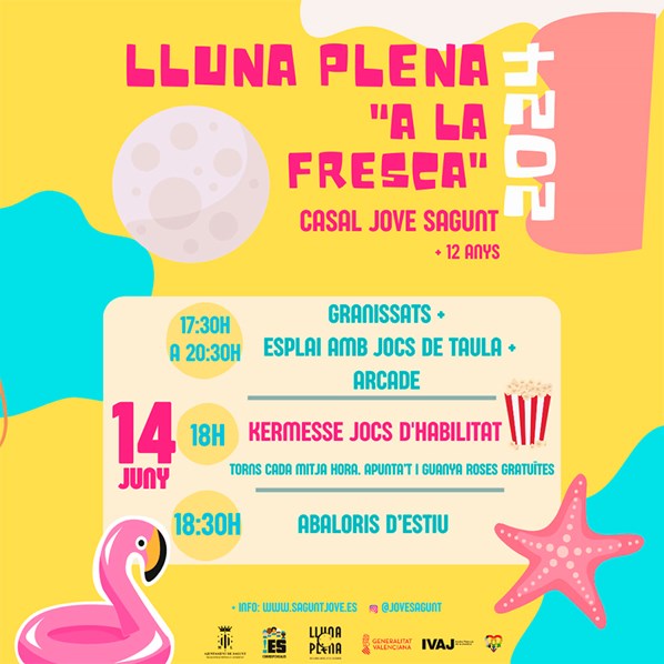 El próximo viernes 14 de junio, en el Casal Jove de Sagunto se celebrará la última LLuna Plena del curso antes del inicio del verano.