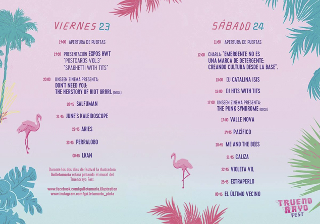 Con el Truenorayo Fest se propone un fin de semana lleno de actividades culturales con el objetivo de potenciar la música como plataforma de difusión cultural. Tanto bandas emergentes valencianas como bandas nacionales e internacionales de primer nivel tienen cabida en el cartel. Este año podremos disfrutar de los directos de El Último Vecino , Extraperlo, Violeta Vil , Aries, Caliza, Salfumán, Me and the Bees, Pacífico, Lkan, June's Kaleidoscope, P e rralobo y las sesiones de Dj's de Catalina Isis, Valle Nova y Hits With Tits.