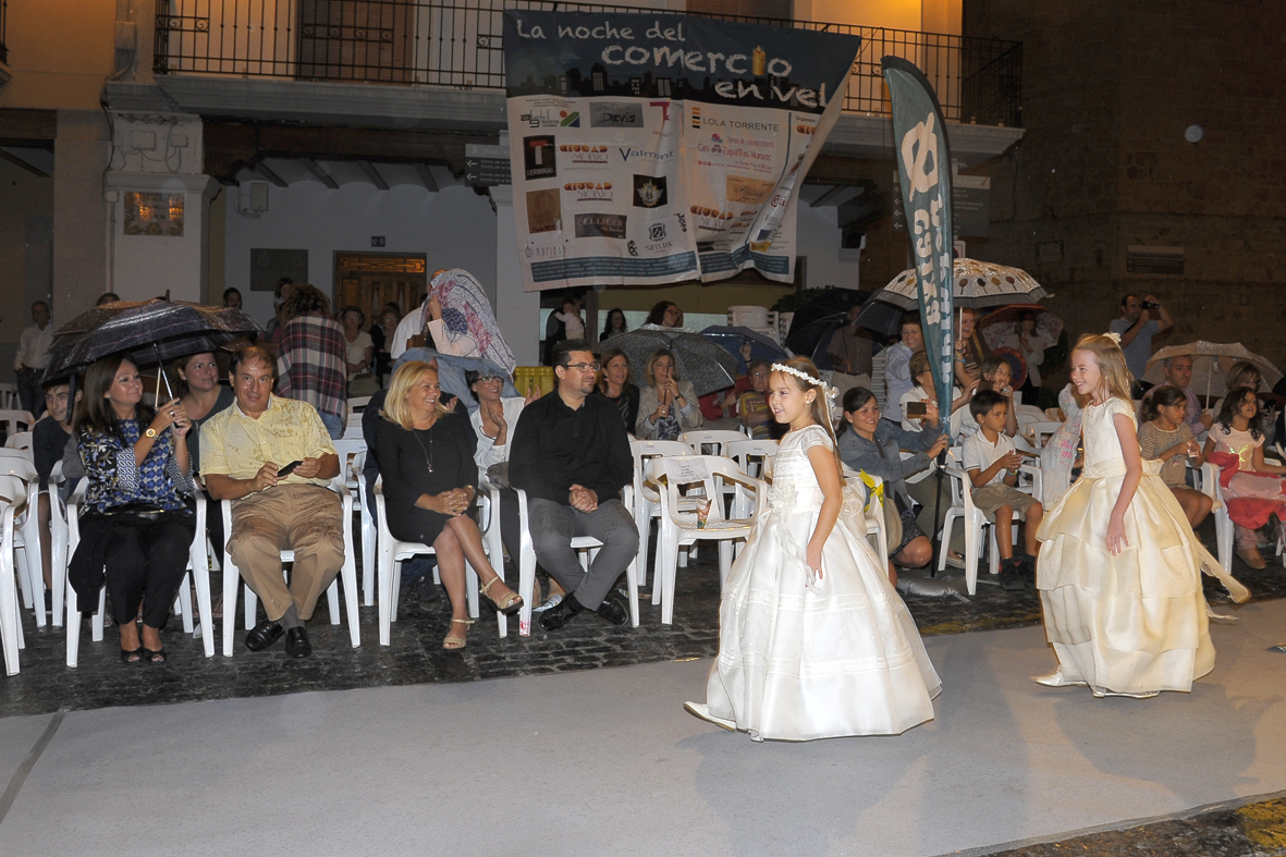 El concejal delegado de Comercio, Sergio Moreno, y otros concejales de la corporación asistieron el viernes al desfile de la “Noche en Vela” que tuvo que ser suspendido por la lluvia. Antes de que se suspendiera esta iniciativa impulsada desde la Asociación de Comercio Ciudad de Sagunto, se pudo disfrutar del desfile de una colección de moda infantil, ropa interior, baño, complementos, peluquería y moda de hombre y mujer.